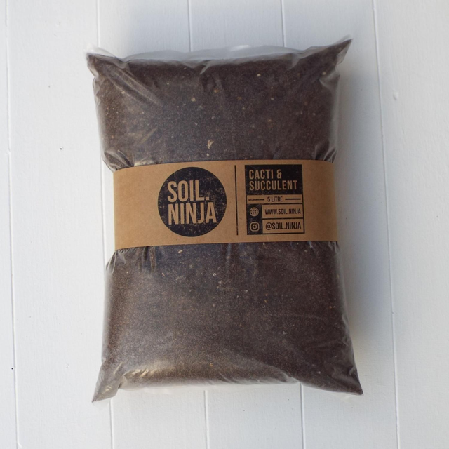 Cacti and Succulent Soil, blended by Soil Ninja with sharp drainage, natural nutrients and detoxifying ingredients to keep you arid plants feeling at home. A perfect blend of Coco Coir, Horticultural Sand, Grit, Pumice, Worm Castings, Activated Charcoal. Also suitable for Snake Plants, Jade Plant and Xeric bromeliads . 2.5L bag