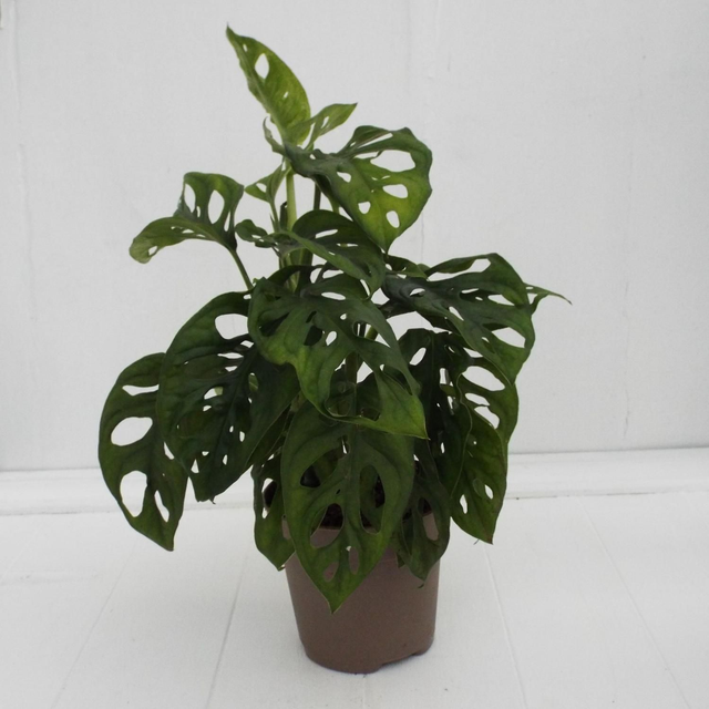 Monstera adansonii - Philodendron Monkey Mask - so named as the leaves resemble a monkeys face , related to the swiss cheese plant . Grow in indirect light and keep moist and warm. Pot diameter 13cm H 11cm. Plant height 25cm